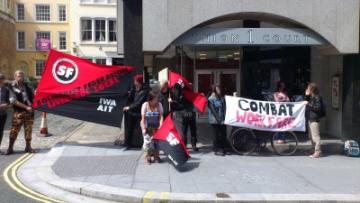 (12 June), around a dozen anti-workfare activists joined a picket of