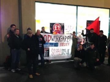 Newcastle SolFed continues its ongoing work against the Governments controversial Workfare Scheme. At the moment our focus is targeting one of its biggest beneficiaries, the Poundland chain of of high street stores. There was a large turnout for the demo, our numbers bolstered by local anarchist and anti cuts groups. As ever the support from the public was overwhelmingly sympathtic, with the anger toward the scheme palpable. Newcastle SolFed will continue organising against Workfare and anyone interested in getting involved please email us.